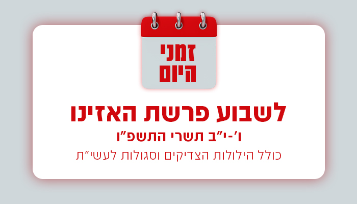 זמני היום לתאריכים ו'-י"ב תשרי התשפ"ו כולל הילולות הצדיקים וסגולות לעשרת ימי תשובה