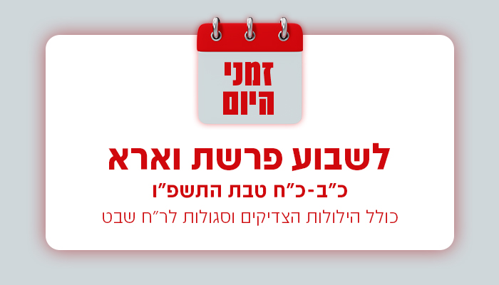 זמני היום לתאריכים כ"ב-כ"ח טבת התשפ"ו כולל הילולות הצדיקים וסגולות לר"ח שבט
