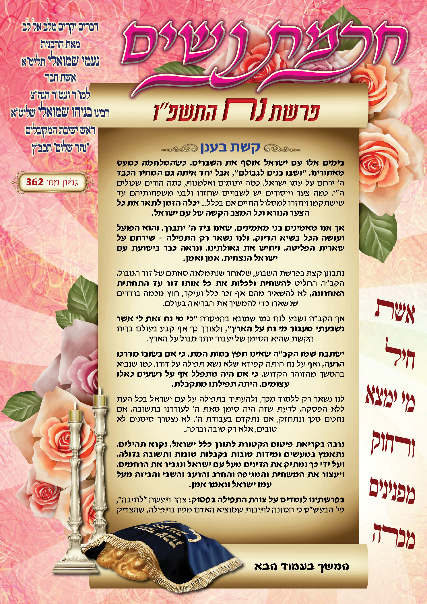 מפי מו''ר ראש הישיבה הרב בניהו שמואלי שליט''א