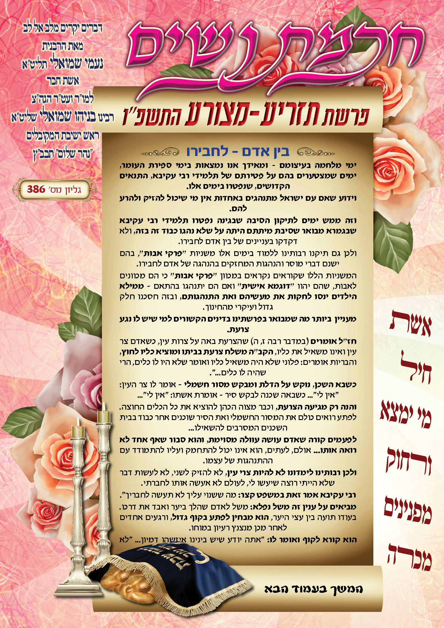 שבת פרשת תזריע מצורע - חס"ה לשבת