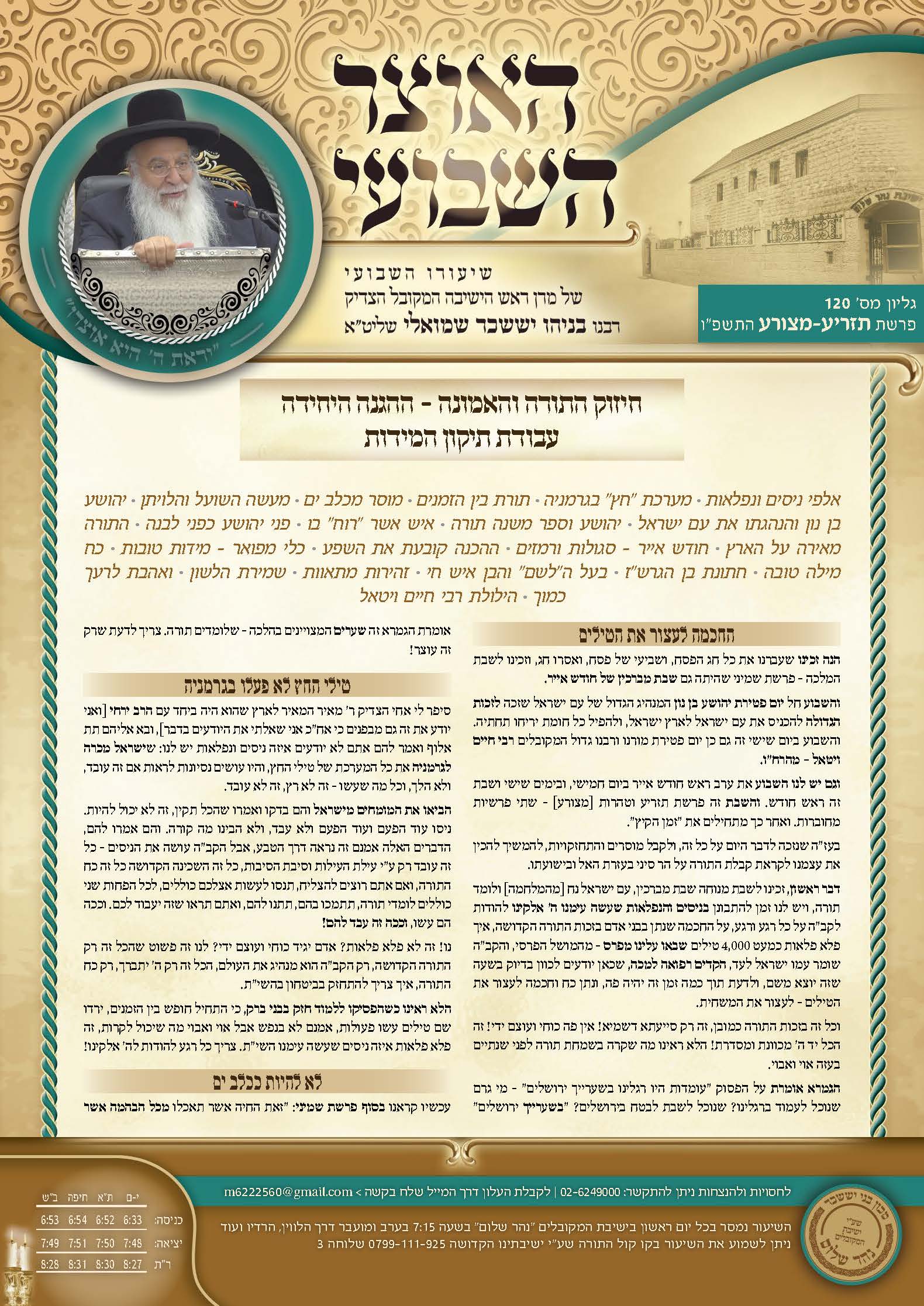 פרשת ויקרא תשפ"ו השיעור הגדול בתבל בזוהר הקדוש מפי שר בית הזוהר המקובל ר' בניהו שמואלי שליט"א