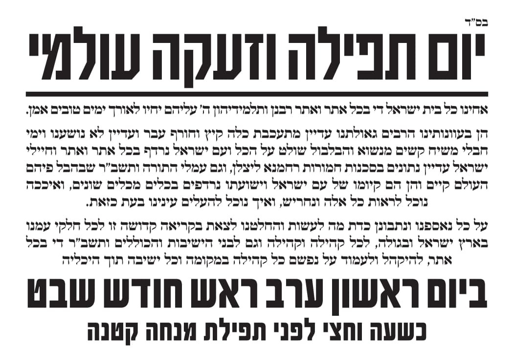 אי"ה ביום חמישי י״ט טבת תשפ״ו (08/01/2026) נערוך בישיבתינו הקדושה תיקון היסוד [פגם הברית] | תחילת התיקון 12:30 מדויק סיום התיקון 17:30 משוער.