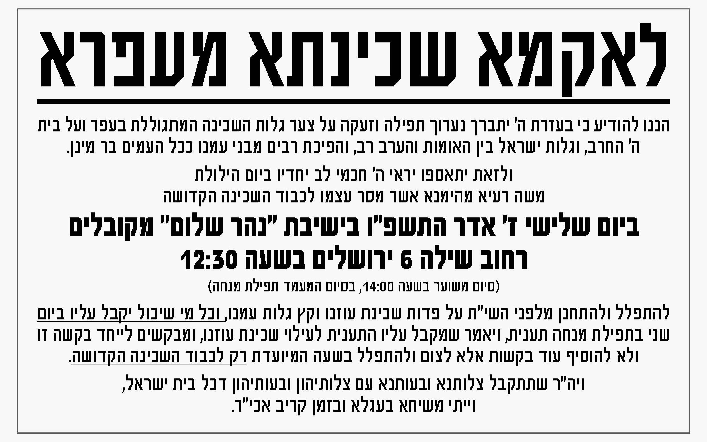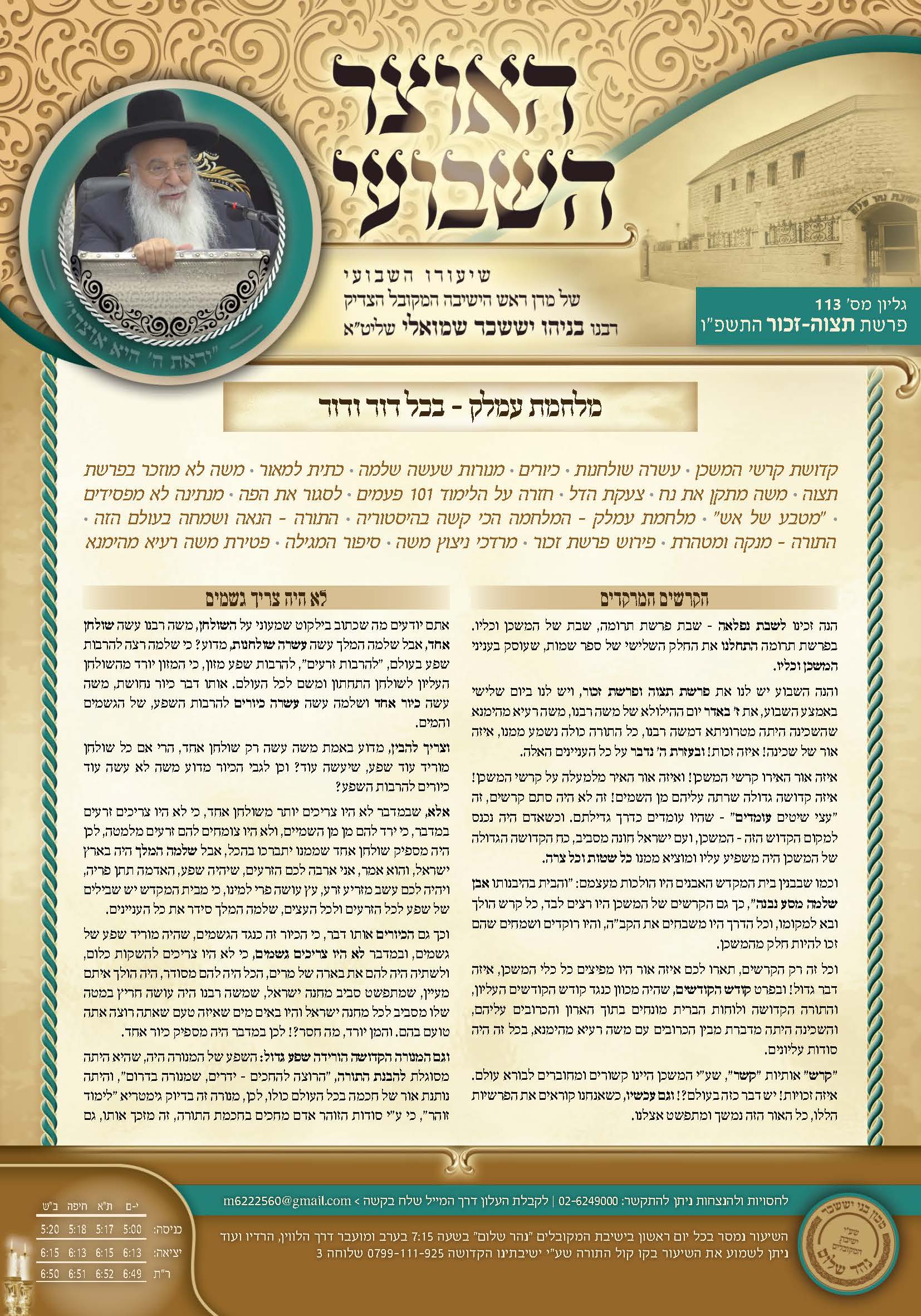 ז שבט תשפ"והשיעור השבועי