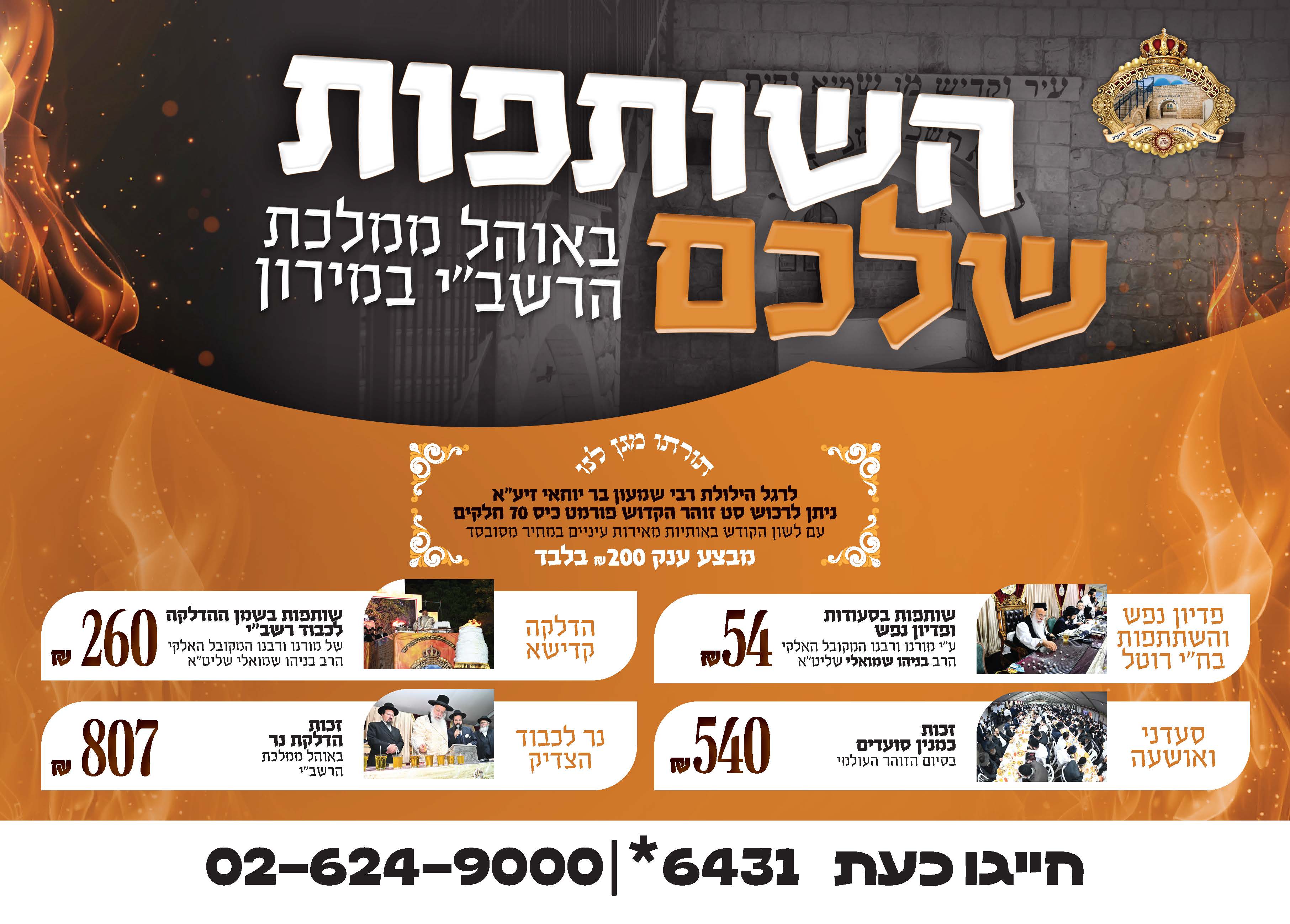 השותפות שלכם באוהל ממלכת הרשב"י במירון